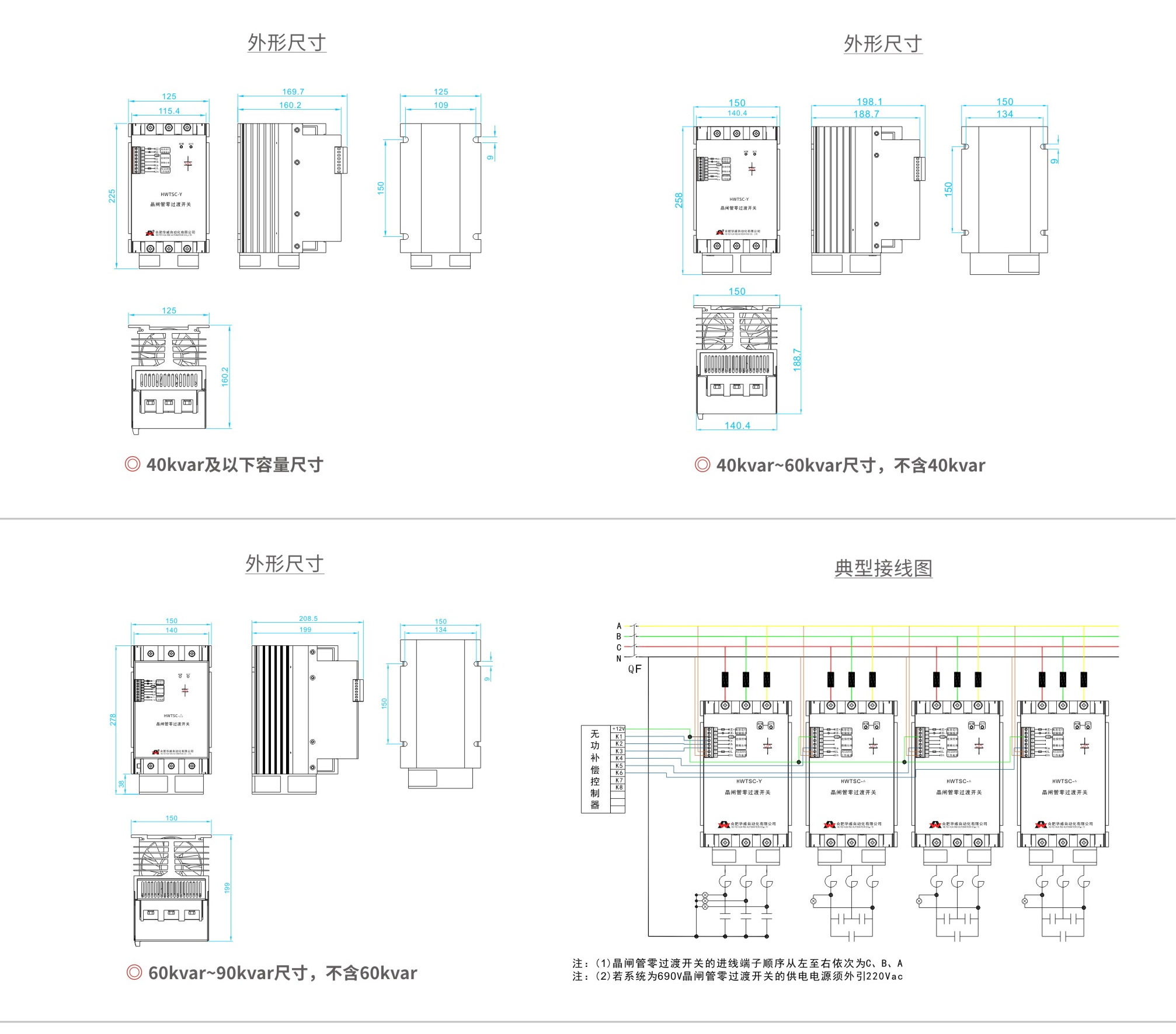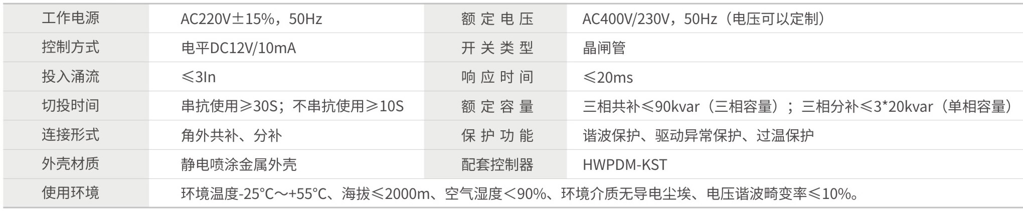 HWTSC系列晶闸管零过渡开关是-种实现低压电力电容器快速投切的电力电子型半导体开关,主要由大功率晶闸管模块、光电隔离电路、磁隔离触发电路、保护电路、散热装置等组成。它能接收控制器电平信号,动态响应投切电力电容器,无机械触点,过零可靠,寿命长。适用于400V-690V系统负荷快速变化和谐波畸变率较高,不适用复合开关的用电场合动态补偿使用。