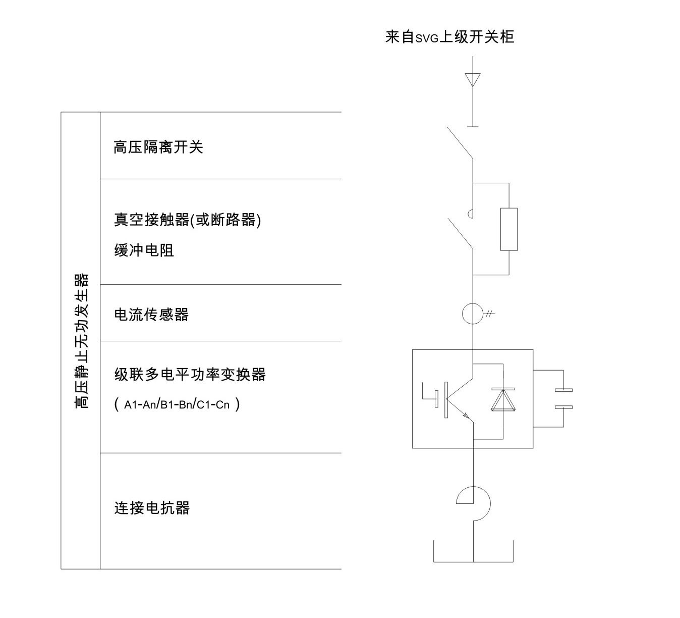 静止无功发生器SVG,又称高压动态无功补偿发生装置或静止同步补偿器。是指由自换相的电力半导体桥式变流器来进行动态无功补偿的装置。SVG的基本原理是利用可关断大功率电力电子器件(IGBT) 组成自换相桥式电路,经过电抗器或变压器并联在电网上,适当地调节桥式电路交流侧输出电压的幅值和相位,或者直接控制其交流侧电流,就可以使该电路吸收或发出满足要求的无功电流,实现动态无功补偿的目的。
