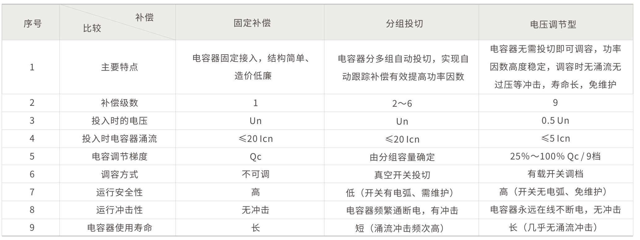 无充放电:电容器永远在线解决电容器运行中投切引起的充放电问题,调节可以随系统无功变化随时进行;