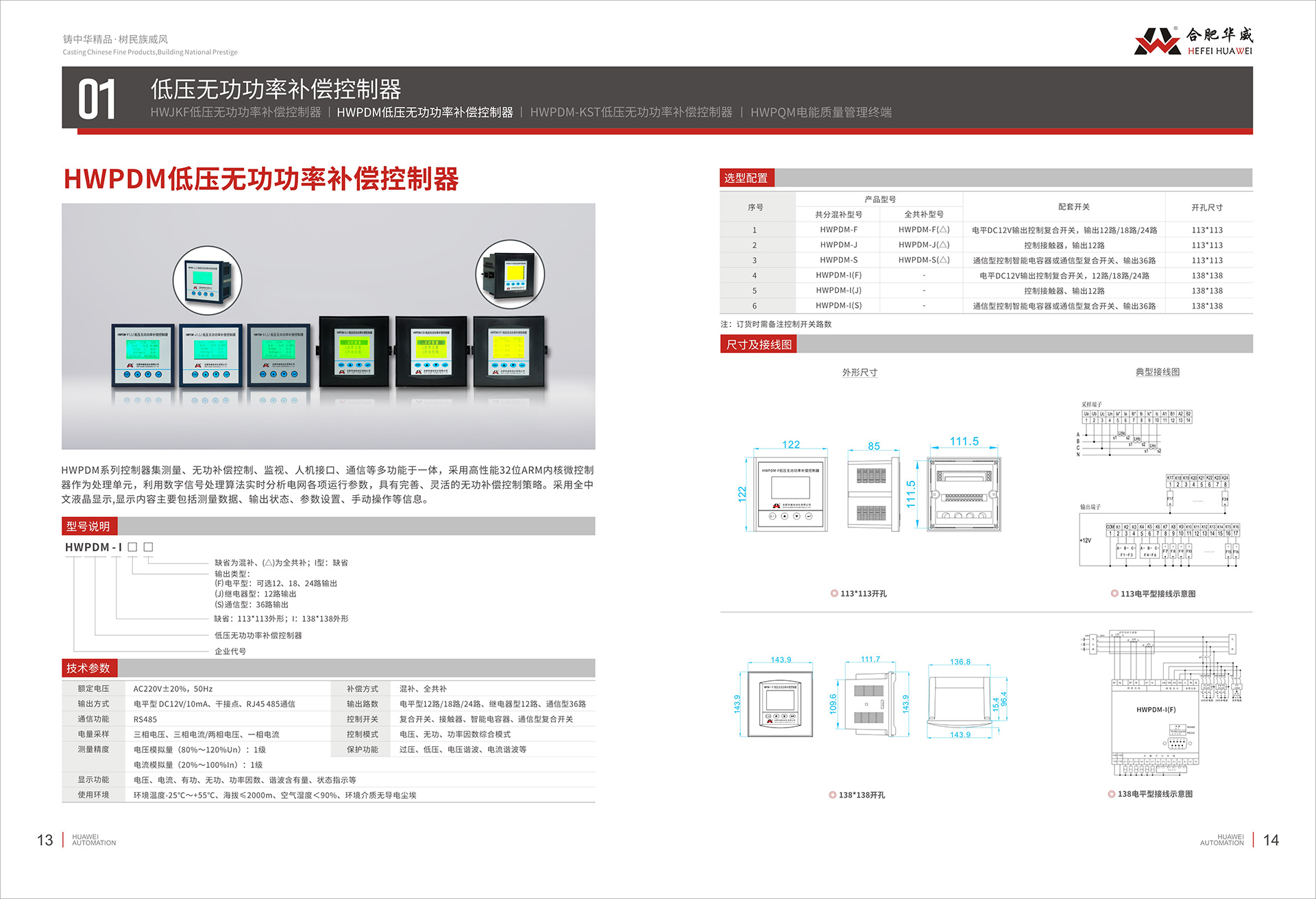 HWPDM系列控制器集测量、无功补偿控制、监视、人机接口、通信等多功能于一体,采用高性能32位ARM内核微控制器作为处理单元,利用数字信号处理算法实时分析电网各项运行参数,具有完善、灵活的无功补偿控制策略。采用全中文液晶显示,显示内容主要包括测量数据、输出状态、参数设置、手动操作等信息。